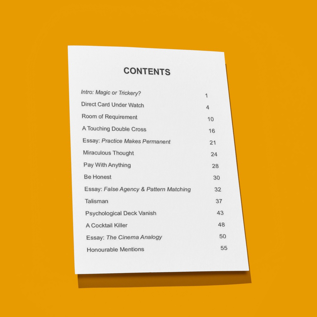 "This book has some brilliant thinking in it guaranteed to influence your magic for the better. It has 9 killer effects with a variation on Double Cross which is an absolutely banger & worth the price of the book alone."